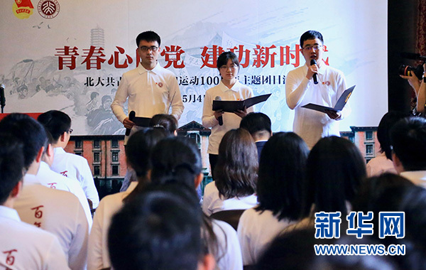 新華網北京5月4日電(潘子荻)“青春心向黨 建功新時代”北大共青團紀念五四運動100周年主題團日活動4日在北京大學紅樓舉行。