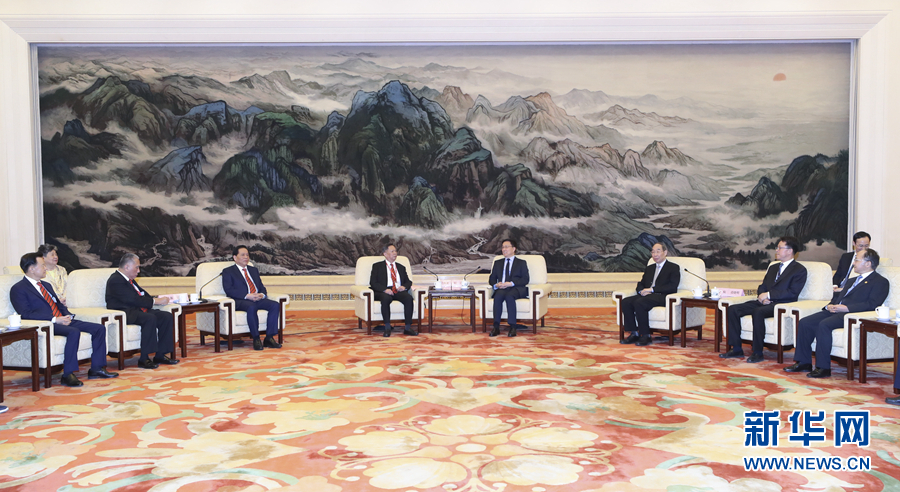 新華社北京5月21日電(記者查文曄)中共中央政治局常委、國務院副總理韓正21日下午在人民大會堂會見了香港福建社團聯會訪京團,與他們交流并合影留念。