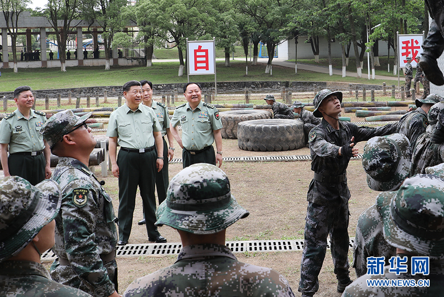 5月21日,中共中央總書記、國家主席、中央軍委主席習近平到陸軍步兵學院視察。這是習近平觀看學員進行極限訓練。新華社記者 李剛 攝