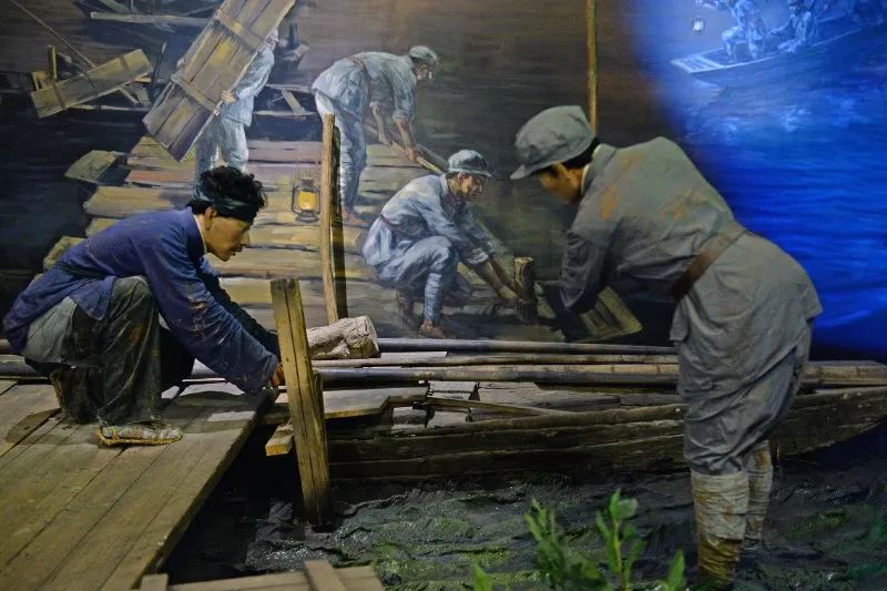 于都縣中央紅軍長征出發紀念館中蘇區群眾鋪設浮橋場景。新華社記者 萬象 攝