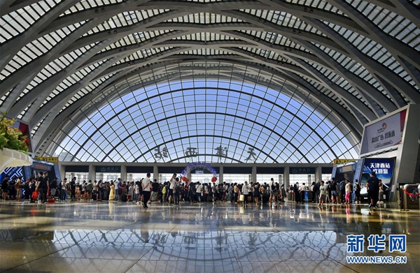 6月9日,旅客在天津西站候車大廳排隊(duì)等候。據(jù)悉,全國(guó)鐵路9日迎來端午小長(zhǎng)假返程客流高峰,預(yù)計(jì)發(fā)送旅客1370萬人次,加開旅客列車889列。新華社發(fā)(楊寶森 攝)