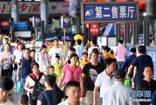 6月9日,在廣西南寧市埌東汽車站,旅客進(jìn)入候車室。當(dāng)日是端午小長(zhǎng)假最后一天,廣西南寧市客運(yùn)站迎來客流返程高峰。新華社記者 陸波岸 攝
