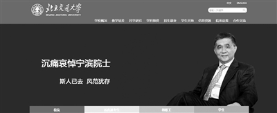 為悼念寧濱,北京交通大學的官網已變成黑色,并發出訃告,其追悼會將于6月18日上午10時,在北京八寶山殯儀館東禮堂舉行。