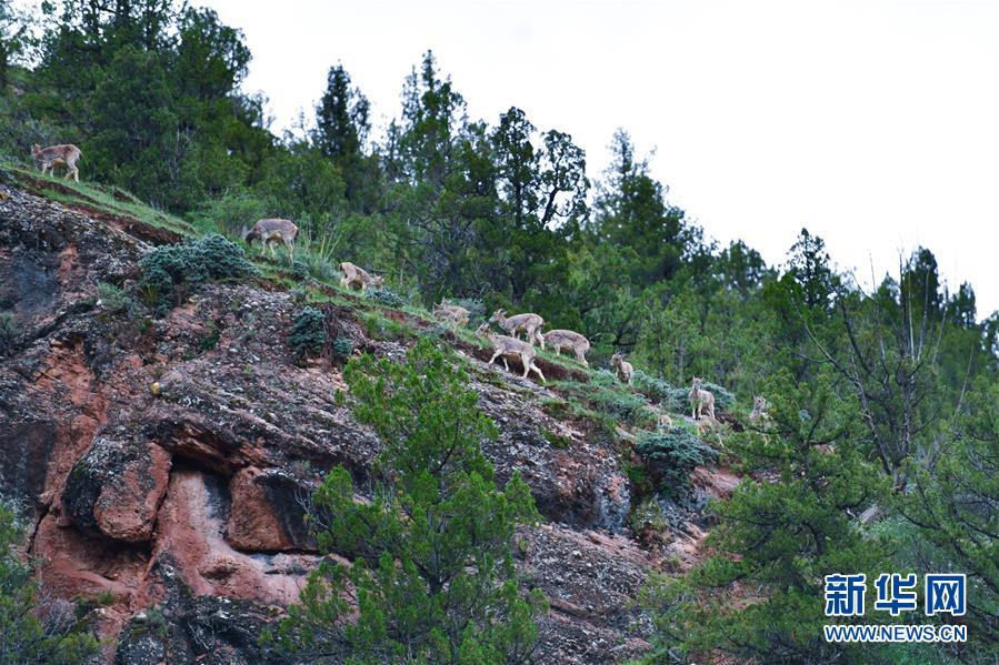 這是在青海省玉樹藏族自治州雜多縣昂賽鄉(xiāng)境內拍攝的一群巖羊(6月21日攝)。新華社記者 張龍 攝