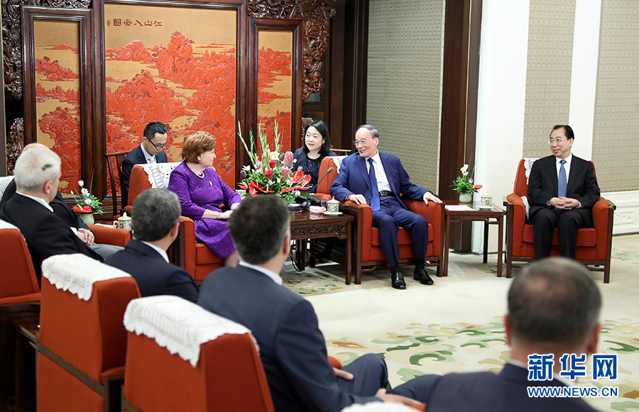 6月25日,國家副主席王岐山在北京中南海紫光閣集體會見出席巴庫國際論壇北京高級別會議的外方代表。 新華社記者 丁海濤 攝
