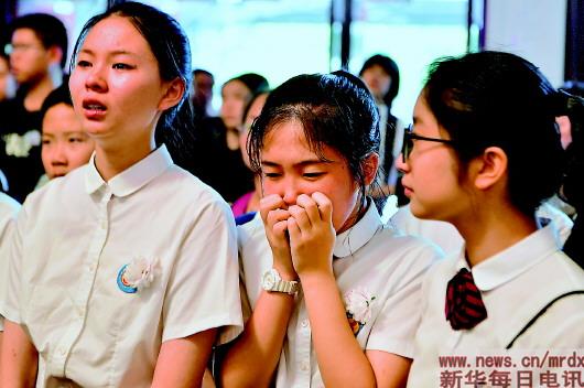 7月21日,在廈門六中音樂老師高至凡的追思會現場,合唱團學生含淚送別自己的老師。新華社記者魏培全攝