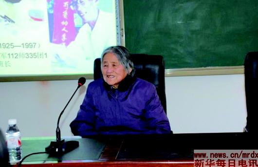 ▲這是李玉安的老伴在給學生講述李玉安的故事。 新華社發