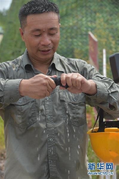 “開始覺得身體有點軟,快半個小時的時候,就有點脫水的感覺,有點頭昏,全身無力。但意識是清醒的。”第一次進行高空帶電作業的龍雙全身體斜著靠在一棵大樹上休息,腳仍然不住地顫抖,開口說話臉都在抖動。
