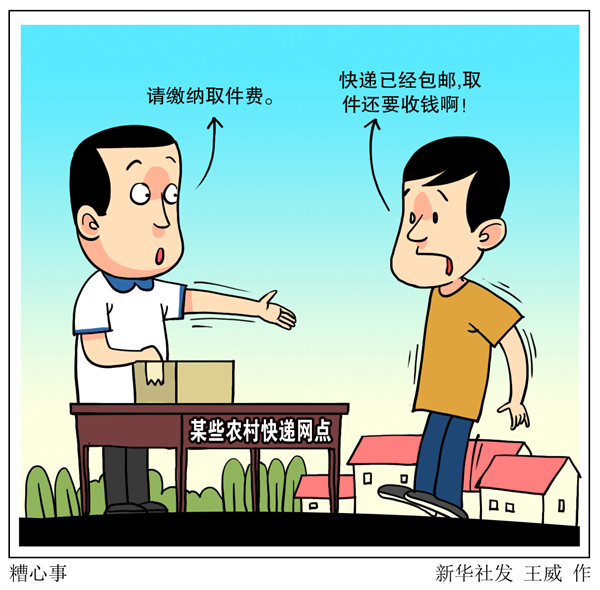 范先生的遭遇并不鮮見:廣東省肇慶市廣寧縣古水鎮(zhèn)村民投訴稱,長期以來每取一件要交3元錢;湖南寧鄉(xiāng)巷子口鎮(zhèn)也有村民抱怨,鎮(zhèn)上多家快遞都有“二次收費”,每個包裹2至3元錢不等,且多次投訴無果;湖南省邵陽市郵政特邀監(jiān)督員發(fā)現(xiàn)該市某鎮(zhèn)甚至還存在“三次收費”情況……