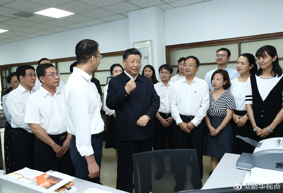 21日下午,正在甘肅考察的習近平總書記來到位于蘭州市區(qū)的讀者出版集團有限公司,了解企業(yè)歷史沿革、出版發(fā)行、經(jīng)營管理等情況,看望《讀者》編輯部工作人員。習近平對大家說,人民群眾多讀書,我們的民族精神就會厚重起來、深邃起來。要提倡多讀書,建設(shè)書香社會。(文字記者:張曉松、朱基釵 攝影記者:鞠鵬、謝環(huán)馳)