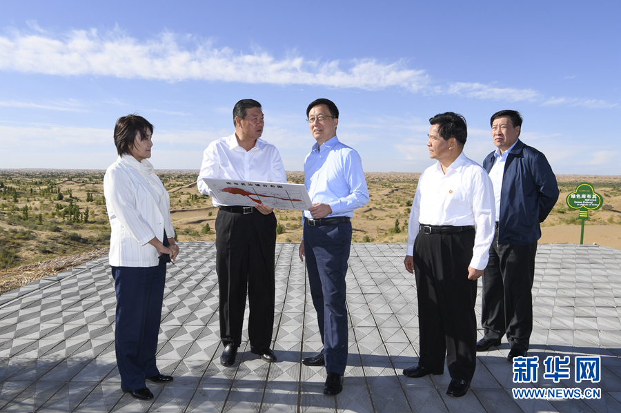 8月26日至27日,中共中央政治局常委、國(guó)務(wù)院副總理韓正到內(nèi)蒙古自治區(qū)鄂爾多斯市,就庫(kù)布其沙漠防沙治沙和生態(tài)建設(shè)情況進(jìn)行調(diào)研。這是8月27日,韓正來(lái)到位于庫(kù)布其沙漠腹地的沙峰綠谷,實(shí)地查看科技手段治沙成果。新華社記者 張領(lǐng) 攝