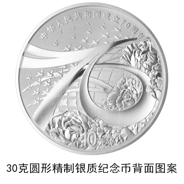 央行介紹,金質(zhì)紀念幣和銀質(zhì)紀念幣正面圖案均為中華人民共和國國徽,并刊國名、年號。金質(zhì)紀念幣有150克圓形和8克圓形兩種,其中150克圓形金質(zhì)紀念幣背面圖案為寓意民族團結(jié)同心,普天歡頌國慶的組合圖案,最大發(fā)行量2000枚。銀質(zhì)紀念幣有300元、50元、10元三種面額。該套金銀紀念幣由中國金幣總公司總經(jīng)銷。