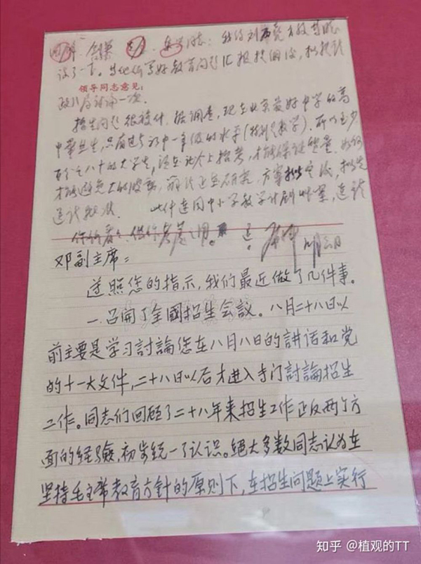 當時感觸最深的是鄧小平在批示中寫下的這段文字:“北京最好中學的高中畢業生只有初中一年級水平(特別是數學),所以至少要80%的大學生在社會上招聘,才能保證質量。”