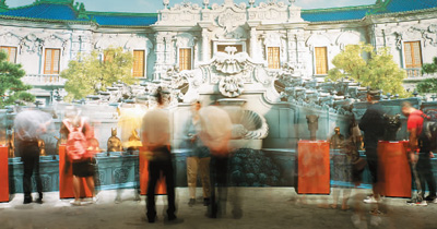 在圓明園海晏堂噴繪背景下,6個朱紅展柜里,分別陳列著牛首、虎首、猴首、豬首、鼠首和兔首銅像。這些獸首銅像原為海晏堂十二生肖噴泉構件,1860年英法聯軍劫掠圓明園后流失海外。時隔159年,它們又重聚一堂,訴說著輾轉曲折的回歸之路,同時也見證著中華國運的滄桑巨變。