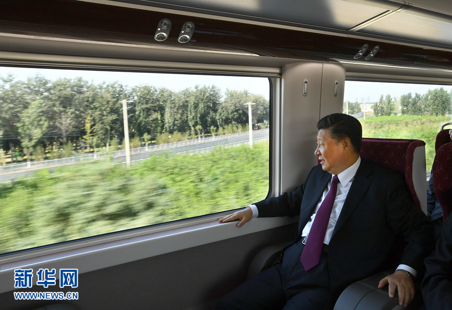 9月25日上午,北京大興國際機場投運儀式在北京舉行。中共中央總書記、國家主席、中央軍委主席習近平出席儀式,宣布機場正式投運并巡覽航站樓。這是習近平乘坐軌道列車前往北京大興國際機場。 新華社記者 謝環馳 攝