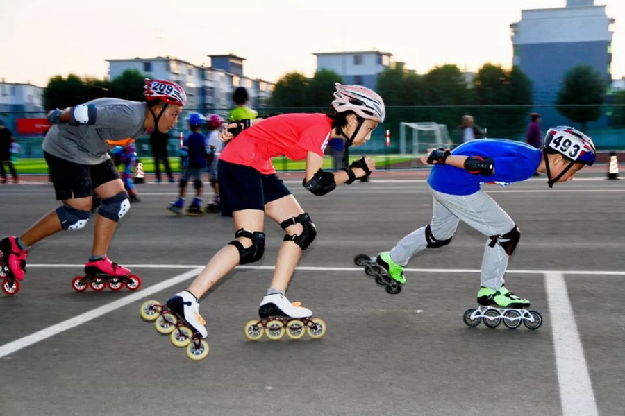 8月31日,遼寧沈陽。少年們在進(jìn)行輪滑訓(xùn)練,為冬季上冰打基礎(chǔ)。作者:周朋