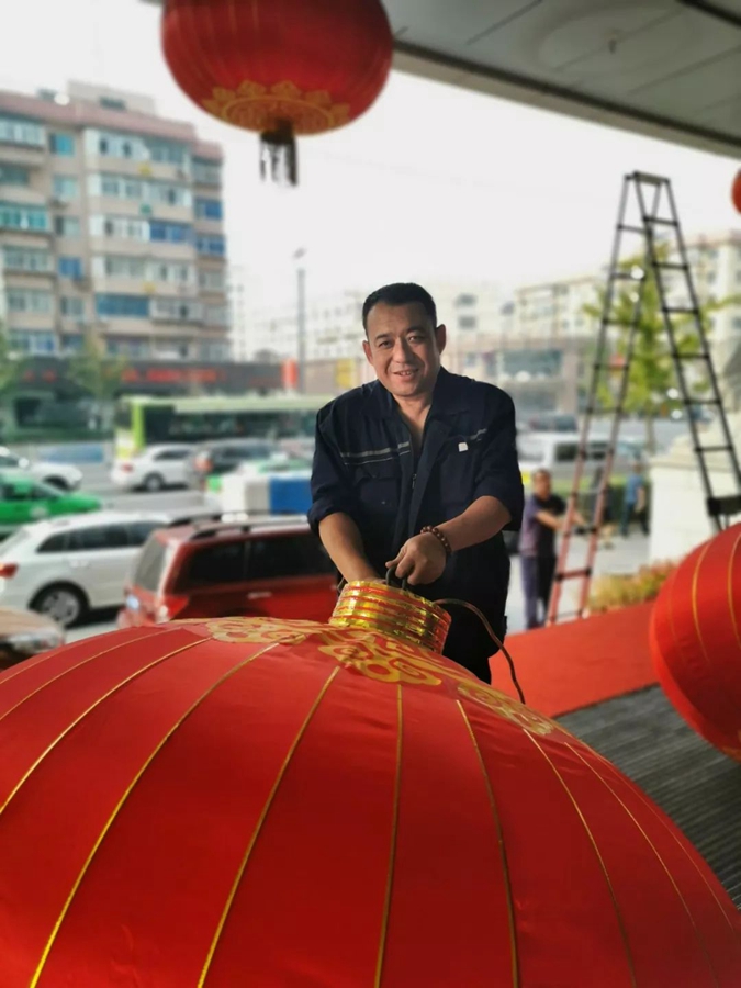 9月30日,遼寧。掛紅燈籠的工人師傅。作者:吹雪