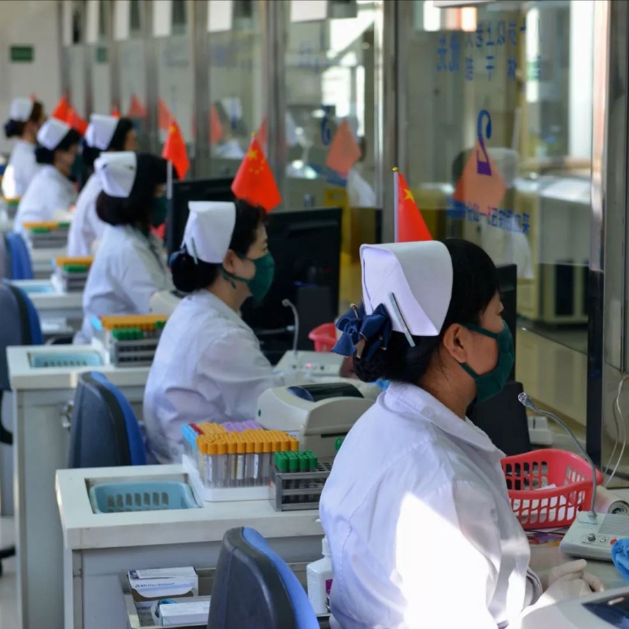 10月2日,遼寧沈陽。采血中心的護(hù)士們國慶期間依然堅守崗位。作者:董志光
