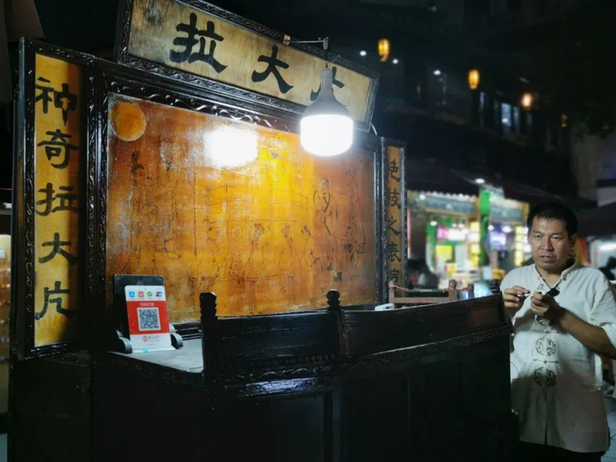 8月21日,浙江杭州。清河坊街的手藝人準(zhǔn)備表演拉大片。作者:一匹馬