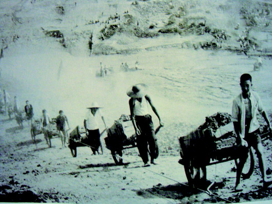 1967年,荊州地區(qū)調(diào)集了京山、天門、荊門、鐘祥和潛江五個(gè)縣的數(shù)萬名民工與移民一起修筑了一條長達(dá)45.4公里的漢江防洪堤,耗費(fèi)了土石共計(jì)6526萬立方米。這些土石足夠填滿4.5個(gè)西湖了。這么大的工程全靠移民和民工肩挑背扛板車推。此后每年,移民都在此基礎(chǔ)上不斷加高圍堤。