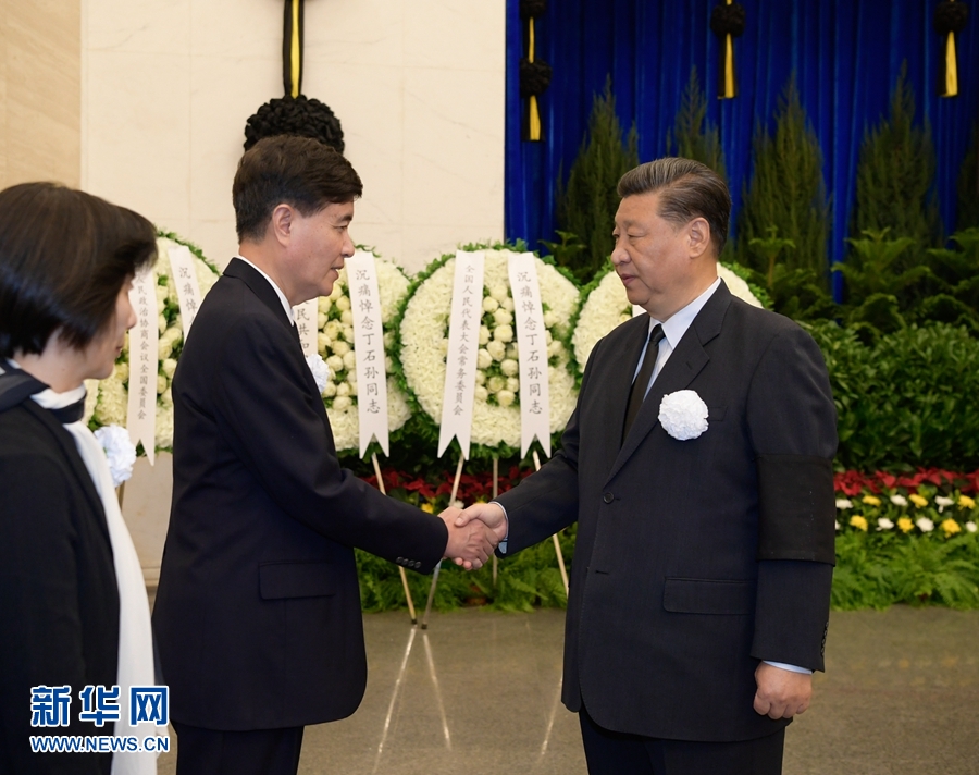 上午9時45分許,習近平、李克強、栗戰書、汪洋、王滬寧、趙樂際、韓正、王岐山等,在哀樂聲中緩步來到丁石孫同志的遺體前肅立默哀,向丁石孫同志的遺體三鞠躬,并與丁石孫同志親屬一一握手,表示慰問。