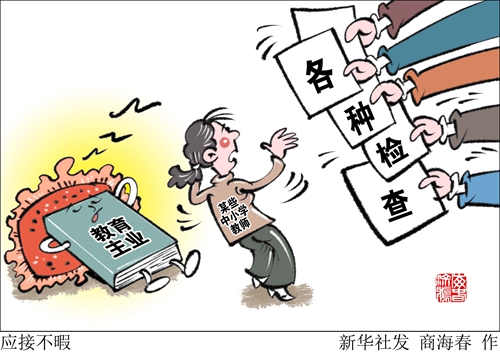 事實上,早在今年3月中辦就發布《關于解決形式主義突出問題為基層減負的通知》,強調今年要解決一些困擾基層的形式主義問題,切實為基層減負。“新華視點”記者近日調查發現,在一些地方的中小學,各種檢查以及與教學無關的活動紛紛進校園,令教師們不堪重負甚至影響了教學工作。