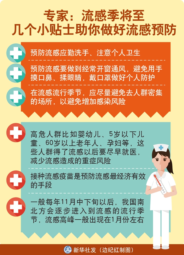接種流感疫苗是預(yù)防流感最經(jīng)濟有效的手段。王大燕說,對于6-23月齡的嬰幼兒、2-5歲兒童、60歲及以上老年人、特定慢性病患者、醫(yī)務(wù)人員、6月齡以下嬰兒的家庭成員和看護人員以及孕婦或準(zhǔn)備在流感流行季節(jié)懷孕的女性等,建議在流感流行季節(jié)到來前優(yōu)先接種流感疫苗。