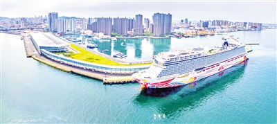 一艘郵輪停靠在山東港口集團(tuán)青島國際郵輪母港。(資料照片)