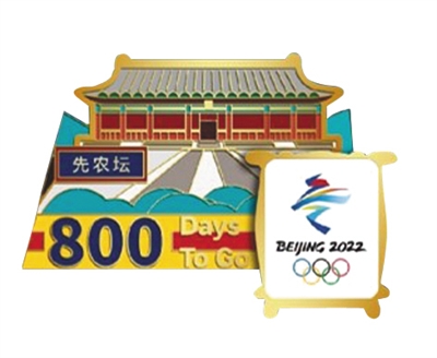 11月27日是北京冬奧會開幕式倒計時800天的日子,倒計時800天系列特許商品將在11月23日,即倒計時800天到來前的周六正式上新。北京中軸線系列將延續1000天倒計時產品風格,繼續展現中軸線建筑,推出以先農壇為設計元素的徽章和馬克杯。