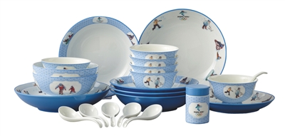民間雪趣系列的工藝是以晶瑩剔透的鎂質強化瓷作胎體,瓷質堅實細膩,觸感順滑圓潤;經百道工序精雕,數次高溫入窯燒制,畫面結合流暢,層次分明;產品無鉛無鎘,健康環保。根據飲食習慣和日常餐飲使用需求,提供2人位的10頭餐具和6人位的22頭餐具供大家選擇。