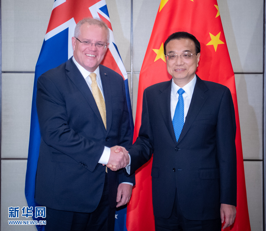 當地時間11月3日下午,國務院總理李克強在曼谷出席東亞合作領導人系列會議期間,同澳大利亞總理莫里森舉行第七輪中澳總理年度會晤。 新華社記者翟健嵐攝