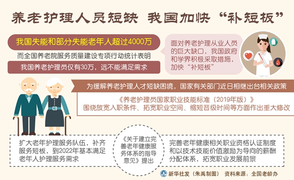 新華社北京11月5日電(記者田曉航)來自全國老齡辦的數據顯示,我國失能和部分失能老年人超過4000萬,而全國養老院服務質量建設專項行動統計表明,我國養老護理員僅有30萬,遠不能滿足需求。面對養老護理從業人員的巨大缺口,我國政府和學界積極采取措施,加快“補短板”。