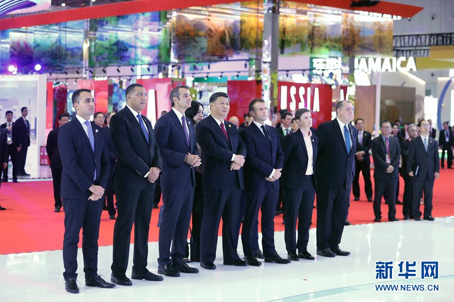 新華社上海11月5日電(記者李忠發、周蕊)國家主席習近平5日在上海出席第二屆中國國際進口博覽會開幕式后,同與會外國領導人共同巡館。