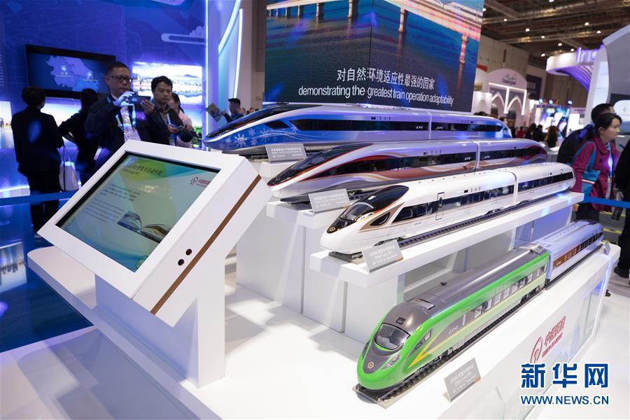 11月8日,參觀者在第二屆進博會中國館中國鐵路展臺參觀。 第二屆中國國際進口博覽會中國館以慶祝新中國成立70周年為主題,呈現70年來新中國面貌發生翻天覆地的變化,展示我國經濟社會發展的歷史性成就和新時代新機遇。 新華社記者 金立旺 攝