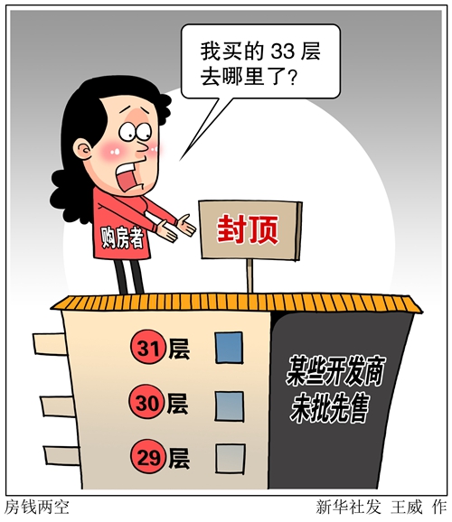 早已過了交房時間,樓房遲遲未能完工。近期高女士聽說封頂了,趕忙來確認。“沒想到我買的3棟總共只有31層,根本就沒有33層!”她氣憤地說。