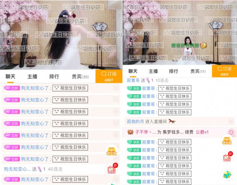 (《祝你生日快樂》舞蹈彈幕截圖 來源:虎牙APP)