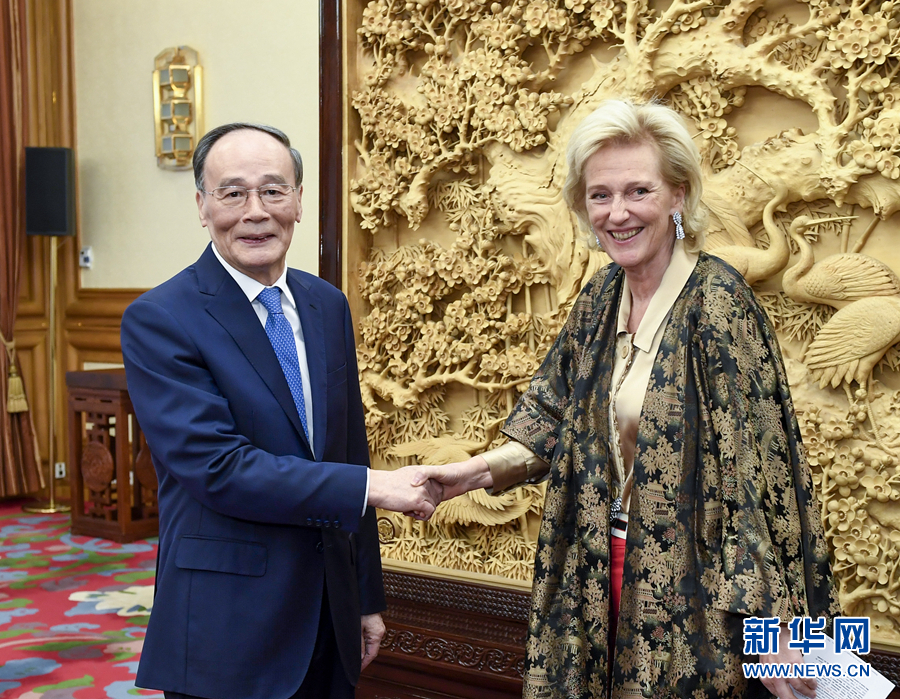 11月18日,國家副主席王岐山在北京中南海會見比利時國王代表、公主阿斯特里德。 新華社記者 高潔 攝