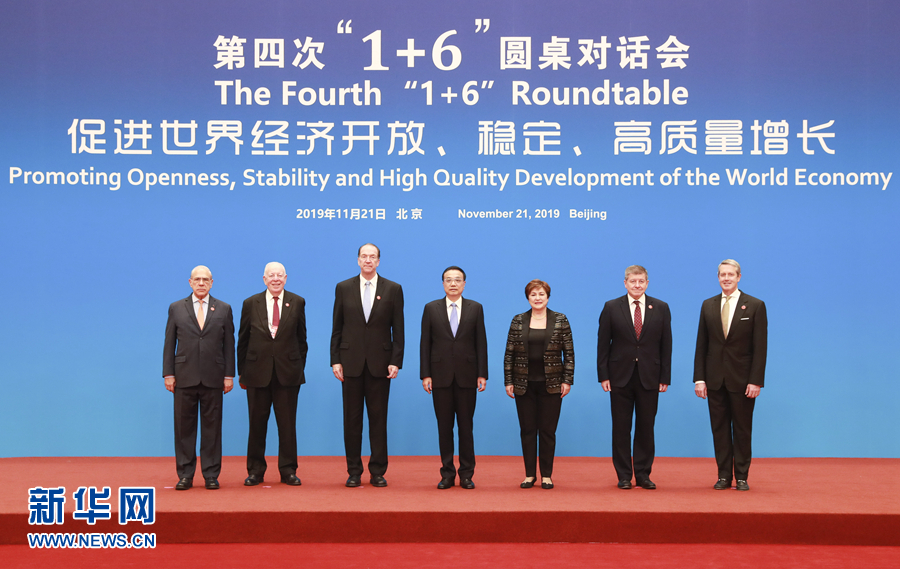 新華社北京11月21日電 國務院總理李克強21日上午在釣魚臺國賓館同世界銀行行長馬爾帕斯、國際貨幣基金組織總裁格奧爾基耶娃、世界貿易組織副總干事沃爾夫、國際勞工組織總干事賴德、經濟合作與發展組織秘書長古里亞和金融穩定理事會主席夸爾斯舉行第四次“1+6”圓桌對話會。會議圍繞“促進世界經濟開放、穩定、高質量增長”的主題,就世界經濟前景與應對措施、推進全球治理改革等議題深入交流。