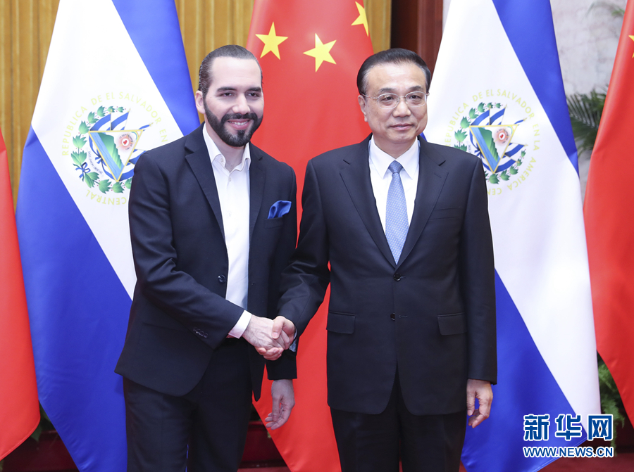 12月3日,國務院總理李克強在北京人民大會堂會見來華進行國事訪問的薩爾瓦多總統布克爾。 新華社記者姚大偉攝