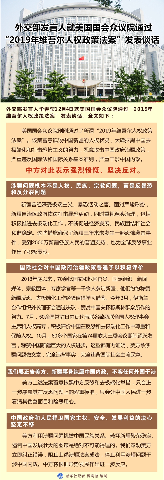 全國人大外事委員會就美國國會眾議院通過“2019年維吾爾人權政策法案”發(fā)表聲明