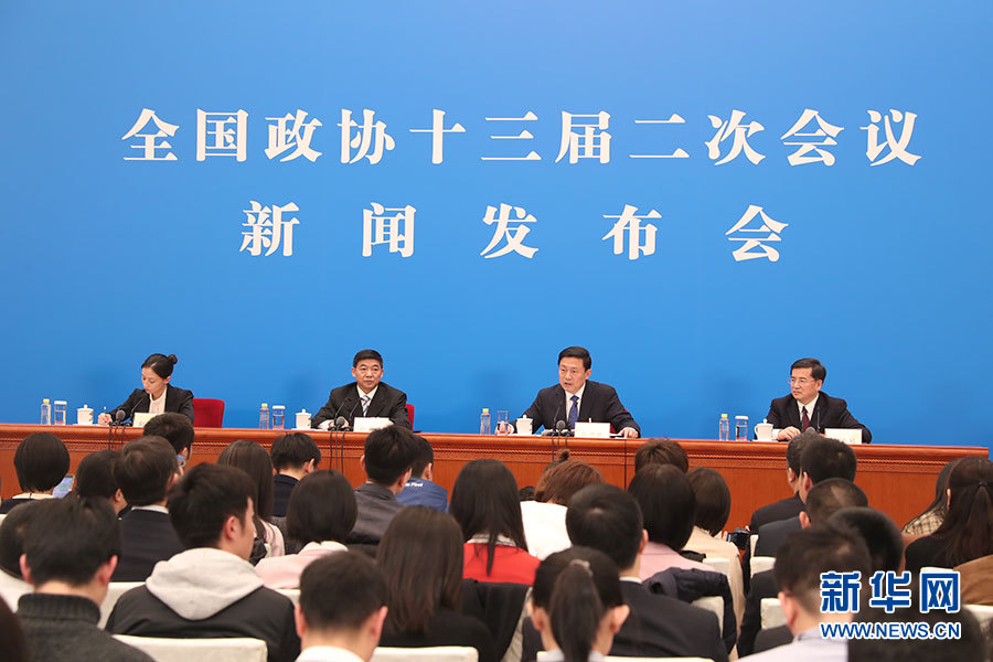 全國政協(xié)十三屆二次會議新聞發(fā)布會于3月2日15:00在人民大會堂一層新聞發(fā)布廳召開,大會新聞發(fā)言人郭衛(wèi)民向中外媒體介紹本次大會有關(guān)情況并回答記者提問。圖為新聞發(fā)布會現(xiàn)場。新華網(wǎng)/中國政府網(wǎng) 陳杰 攝