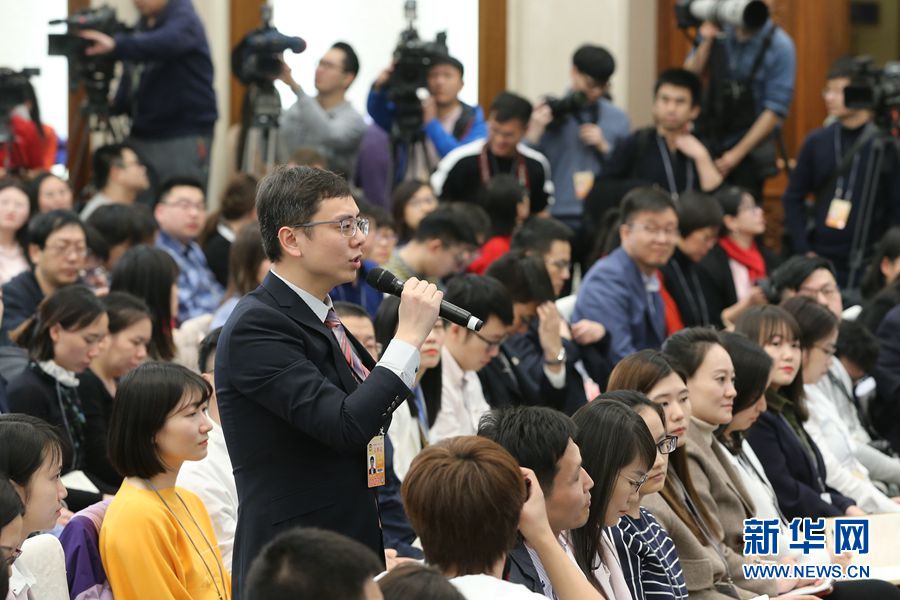 全國政協十三屆二次會議新聞發(fā)布會于3月2日15:00在人民大會堂一層新聞發(fā)布廳召開,大會新聞發(fā)言人郭衛(wèi)民向中外媒體介紹本次大會有關情況并回答記者提問。圖為新華社記者提問。新華社記者 邢廣利?攝?