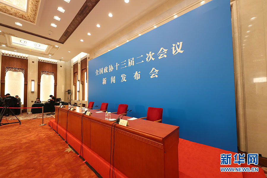 全國政協(xié)十三屆二次會(huì)議新聞發(fā)布會(huì)于3月2日15:00在人民大會(huì)堂一層新聞發(fā)布廳召開,大會(huì)新聞發(fā)言人郭衛(wèi)民向中外媒體介紹本次大會(huì)有關(guān)情況并回答記者提問。圖為新聞發(fā)布會(huì)開始前。新華網(wǎng)/中國政府網(wǎng) 陳杰 攝
