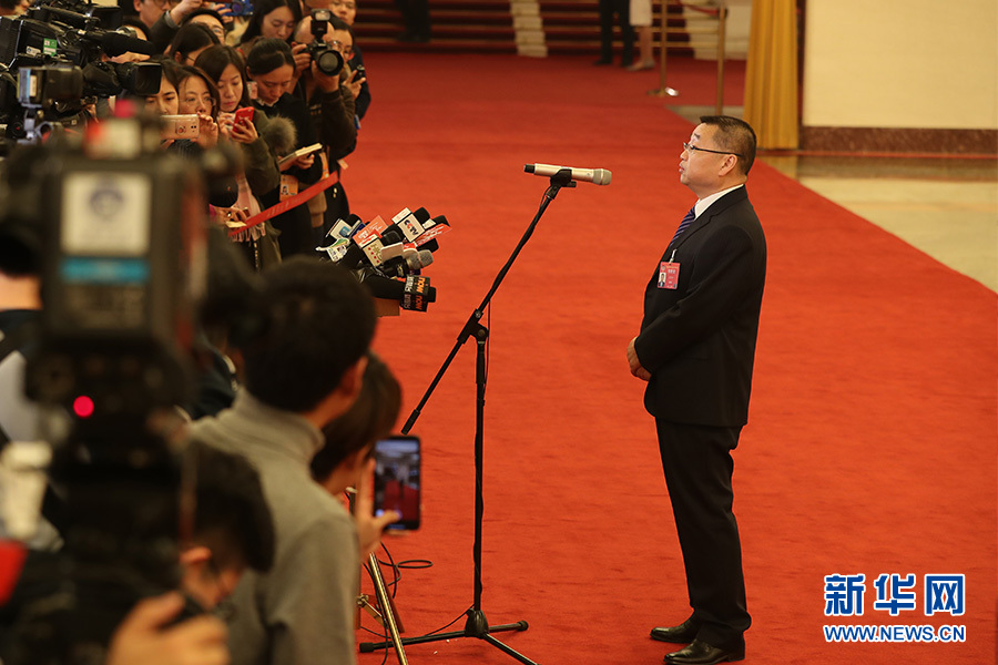 3月3日下午,全國政協十三屆二次會議開幕會結束后,2019年全國兩會“部長通道”在人民大會堂正式開啟,部長們在這里直面熱點,回應關切。圖為國家醫療保障局局長胡靜林接受采訪。新華網/中國政府網 陳杰 攝