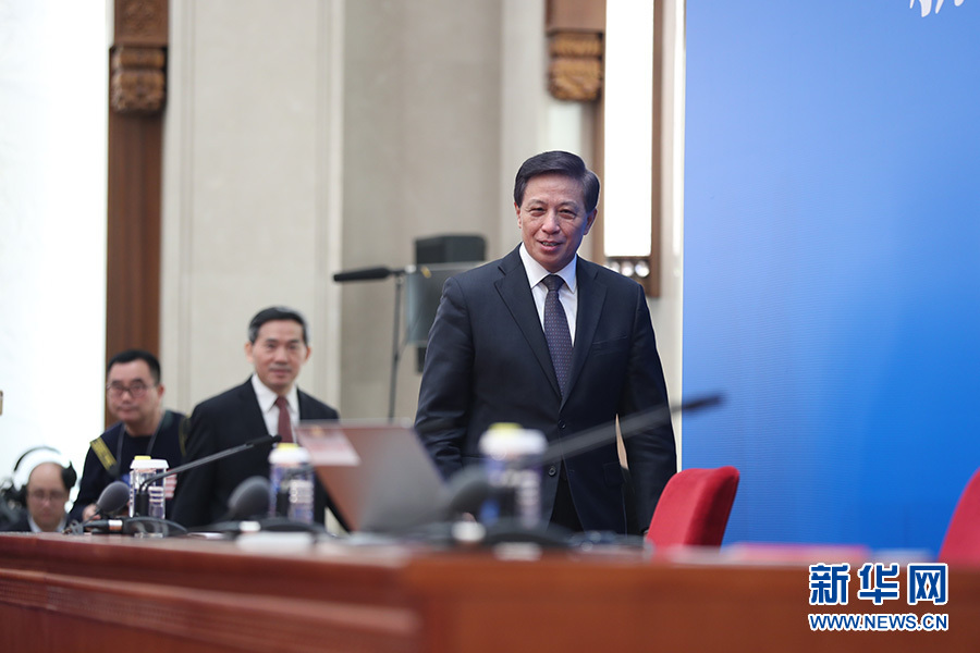 十三屆全國人大二次會議3月4日上午11時15分在人民大會堂新聞發(fā)布廳舉行新聞發(fā)布會,由大會發(fā)言人張業(yè)遂就大會議程和人大工作相關的問題回答中外記者提問。圖為張業(yè)遂步入會場。新華網(wǎng)/中國政府網(wǎng) 翟子赫 攝