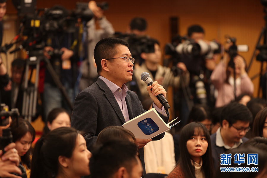 全國(guó)政協(xié)十三屆二次會(huì)議3月5日15:00在梅地亞中心多功能廳舉行記者會(huì),邀請(qǐng)5位全國(guó)政協(xié)委員就“打贏防范化解重大風(fēng)險(xiǎn)、精準(zhǔn)脫貧、污染防治三大攻堅(jiān)戰(zhàn)”回答記者提問。圖為經(jīng)濟(jì)日?qǐng)?bào)記者提問。新華網(wǎng)/中國(guó)政府網(wǎng) 劉廈 攝