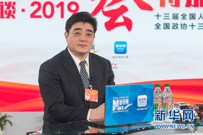 3月5日,全國人大代表、中國石油化工股份有限公司齊魯分公司總經(jīng)理韓峰做客新華網(wǎng)2019全國兩會特別報道。新華網(wǎng) 郭小天 攝