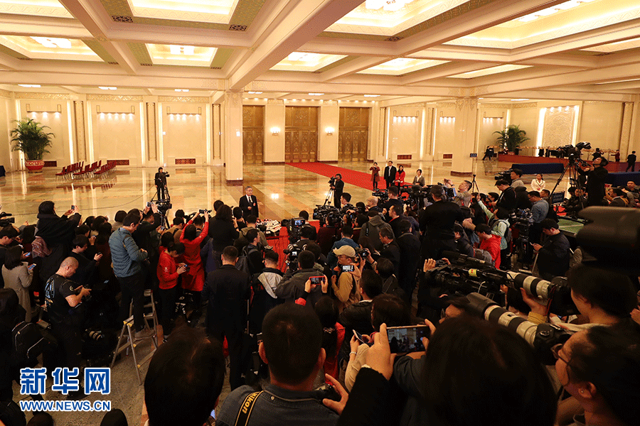 3月5日,第十三屆全國人民代表大會第二次會議在北京人民大會堂開幕。這是記者在“部長通道”采訪。新華網/中國政府網 劉廈攝