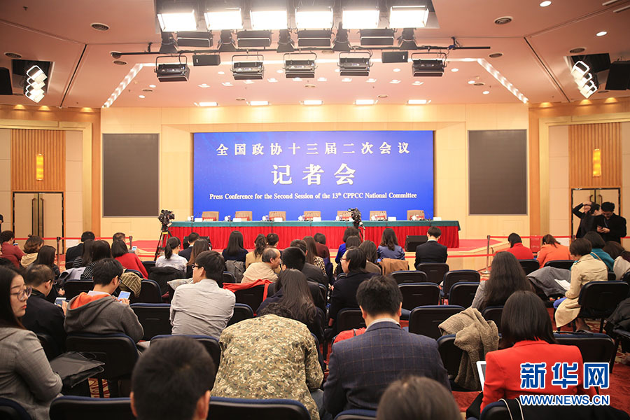 全國(guó)政協(xié)十三屆二次會(huì)議3月5日15:00在梅地亞中心多功能廳舉行記者會(huì),邀請(qǐng)5位全國(guó)政協(xié)委員就“打贏防范化解重大風(fēng)險(xiǎn)、精準(zhǔn)脫貧、污染防治三大攻堅(jiān)戰(zhàn)”回答記者提問(wèn)。圖為記者會(huì)現(xiàn)場(chǎng)。新華網(wǎng)/中國(guó)政府網(wǎng) 陳杰 攝