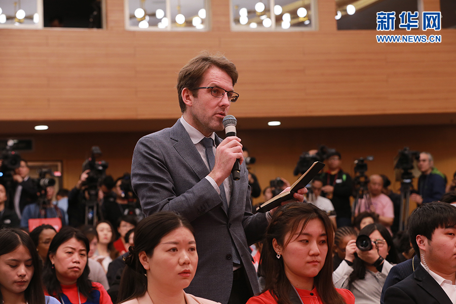 十三屆全國人大二次會議新聞中心于3月6日(星期三)上午10時在梅地亞中心新聞發(fā)布廳舉行記者會,邀請國家發(fā)展改革委主任何立峰,副主任寧吉喆、連維良就“大力推動經(jīng)濟高質(zhì)量發(fā)展”相關(guān)問題回答中外記者的提問。圖為彭博新聞社記者提問。新華網(wǎng)/中國政府網(wǎng) 馬娟 攝
